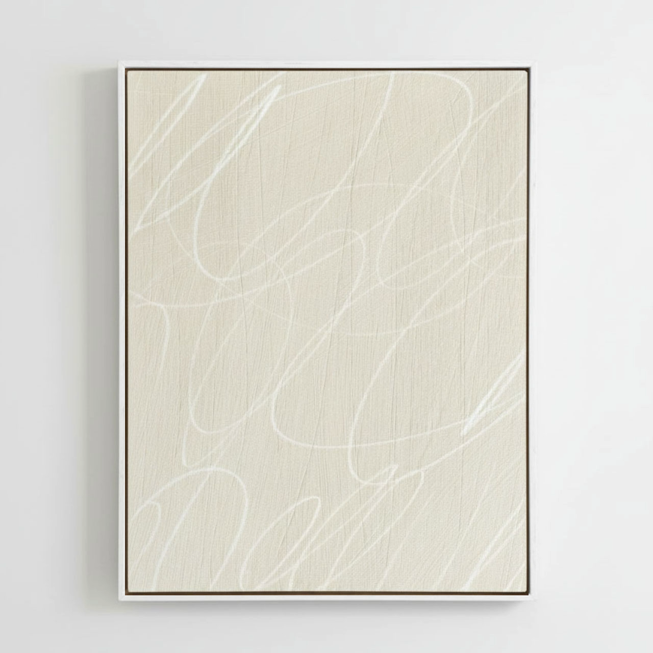 Spontaneous rhythmic gestures sweep across the canvas in expressive strokes, capturing the immediacy and energy of the creative process. These flowing marks in soft linen tones create gentle movement and serene depth, bringing warmth and tranquility to any space.